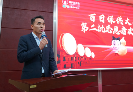 ????????儀式上,海南生產(chǎn)基地副總經(jīng)理李培湖、廣西生產(chǎn)基地總經(jīng)理韋天寶先后致辭,他們首先感謝并肯定了第一批保供志愿者在保供生產(chǎn)中所做的貢獻(xiàn),同時(shí),也向春節(jié)期間前來(lái)支援的志愿者們表示歡迎及感謝。